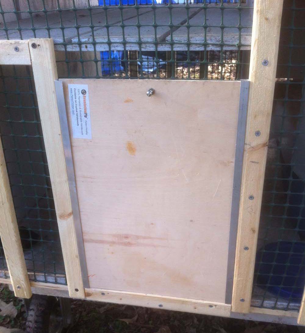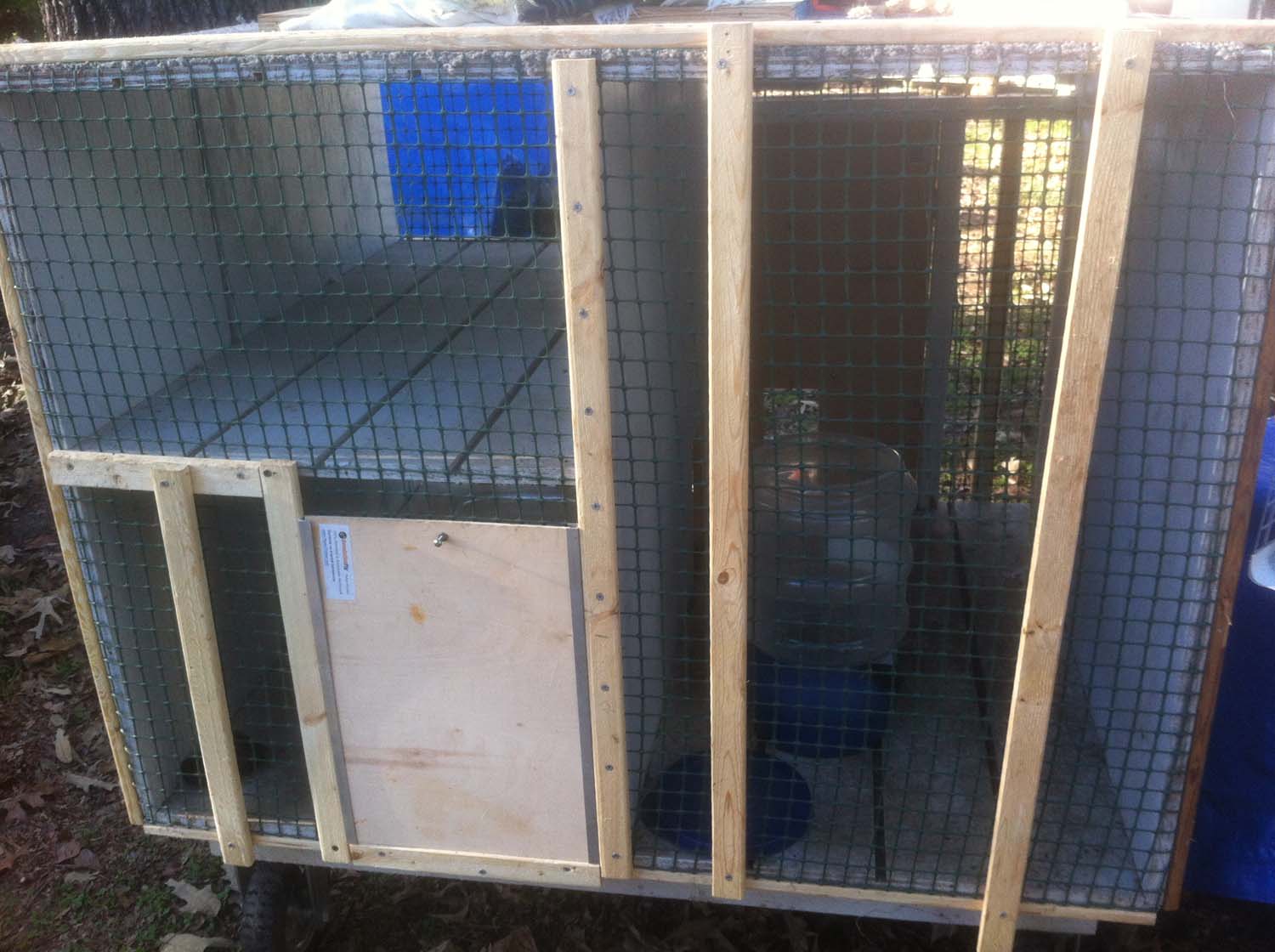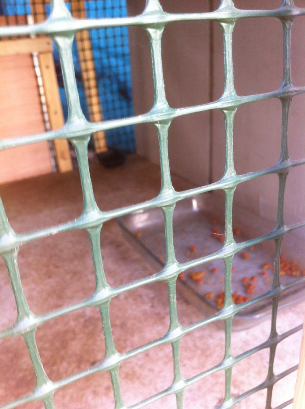 | This is the second feeding room to the right. The Garden Fencing (Photo 6) is safer than using a metal mesh which if broken can cut the cat. Also notice toward the back. This is the rear trap door which is cut to the same dimensions as my metal animal trap. | Available from your hardware store. | |||